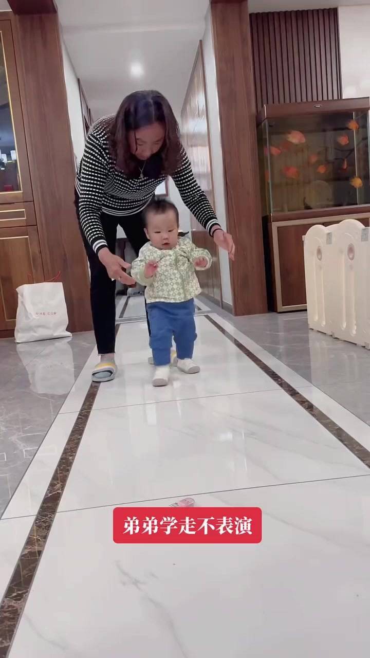 太姥今年86岁,腿脚不算灵便,平时走路得慢悠悠挪着小碎步。那天她刚从沙发上站起来,还没迈出第二步,就感觉衣角被轻轻拽了拽。低头一看,重孙正仰着小脸瞅她,肉乎乎的小手已经背到身后,学着她的样子左右摇晃。“当时我眼泪差点下来,”老人后来跟邻居说,“这孩子连我扶腰的小动作都记得清清楚楚。” 视频里最戳人的是那个转场——太姥走到阳台栏杆边时,小不点突然加快脚步,趔趄着扑过来抱住她的腿。太姥笑着弯腰摸他脑袋,小家伙却学着大人的模样,伸出小手帮太姥理了理被风吹乱的衣领。网友说这一幕像极了时光倒流:“小时候你牵着我蹒跚学步,老了我扶着你慢慢变老。”